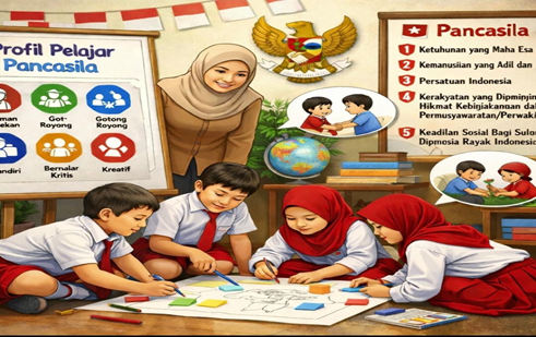 Profil Pelajar Pancasila merupakan arah kebijakan pendidikan nasional yang bertujuan membentuk peserta didik yang berkarakter sesuai nilai-nilai Pancasila. Pada jenjang sekolah dasar, implementasi Profil Pelajar Pancasila menjadi sangat penting karena pendidikan dasar merupakan fondasi utama dalam membangun sikap, moral, dan kebiasaan belajar siswa. Mata pelajaran PPKn memiliki posisi strategis dalam mendukung terwujudnya profil tersebut karena secara substansi memuat nilai-nilai kebangsaan, norma, dan tanggung jawab sebagai warga negara.