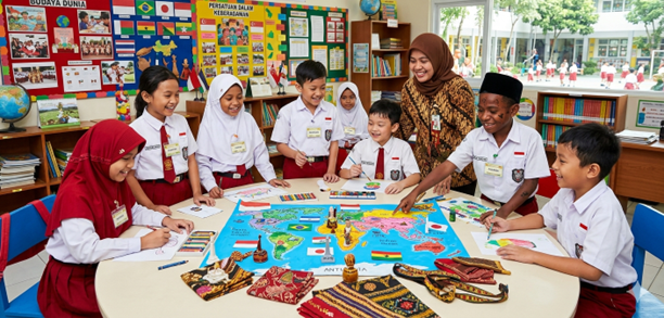 Pembelajaran multikultural merupakan pendekatan pendidikan yang menekankan pentingnya pengakuan dan penghargaan terhadap keberagaman latar belakang peserta didik, baik dari segi budaya, suku, agama, bahasa, maupun kondisi sosial. Pada jenjang sekolah dasar, pendekatan ini memiliki peran strategis karena siswa berada pada tahap perkembangan awal dalam membentuk sikap, nilai, dan karakter. Melalui pembelajaran multikultural, siswa diajak untuk memahami bahwa perbedaan adalah hal yang wajar dan harus dihormati. Karakter kebhinekaan yang dibangun mencerminkan sikap toleransi, saling menghargai, dan kemampuan hidup harmonis dalam keberagaman.